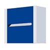 Colores estándar: estructura en gris RAL 7035 y puerta en azul RAL 5010.